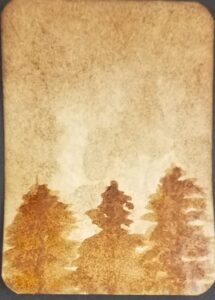 Silná káva vytváří tmavé linky, slabší funguje jako akvarelový wash. Čím víc vrstev, tím hlubší tón.